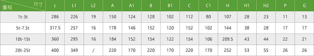 额定载荷: 1/2/2.5/3/5/7.5/10/15/20/25t